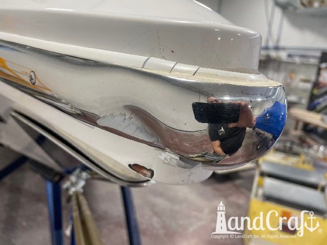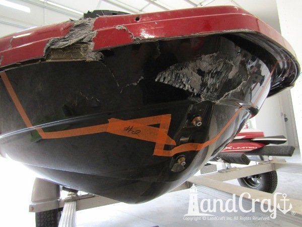 LandCraft® excels at the repair and refinishing of welded and riveted hull aluminum boats. We repair aluminum dents, gouges, scratches and holes caused by dock damage, collision damage, impact damage, storm damage and damage that occurs when in transport (road accidents, road debris, rear-end collisions, trailer malfunctions and more).