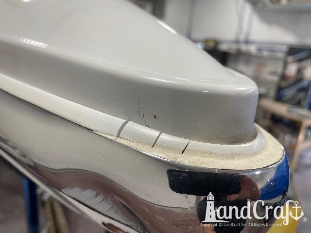 Gelcoat repair is a LandCraft® specialty, and gelcoat work is an art. We custom color match gelcoat in-house which provides the most precise color match. Our team regularly repairs gelcoat gouges, scratches, and scrapes caused by dock damage, collision damage, impact damage, storm damage and damage that occurs when in transport (road accidents and road debris, rear-end collisions, trailer malfunctions and more). Every color is custom matched in-house at LandCraft®.
