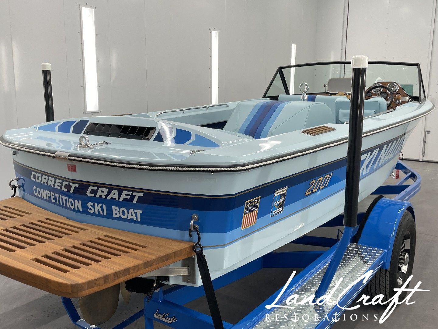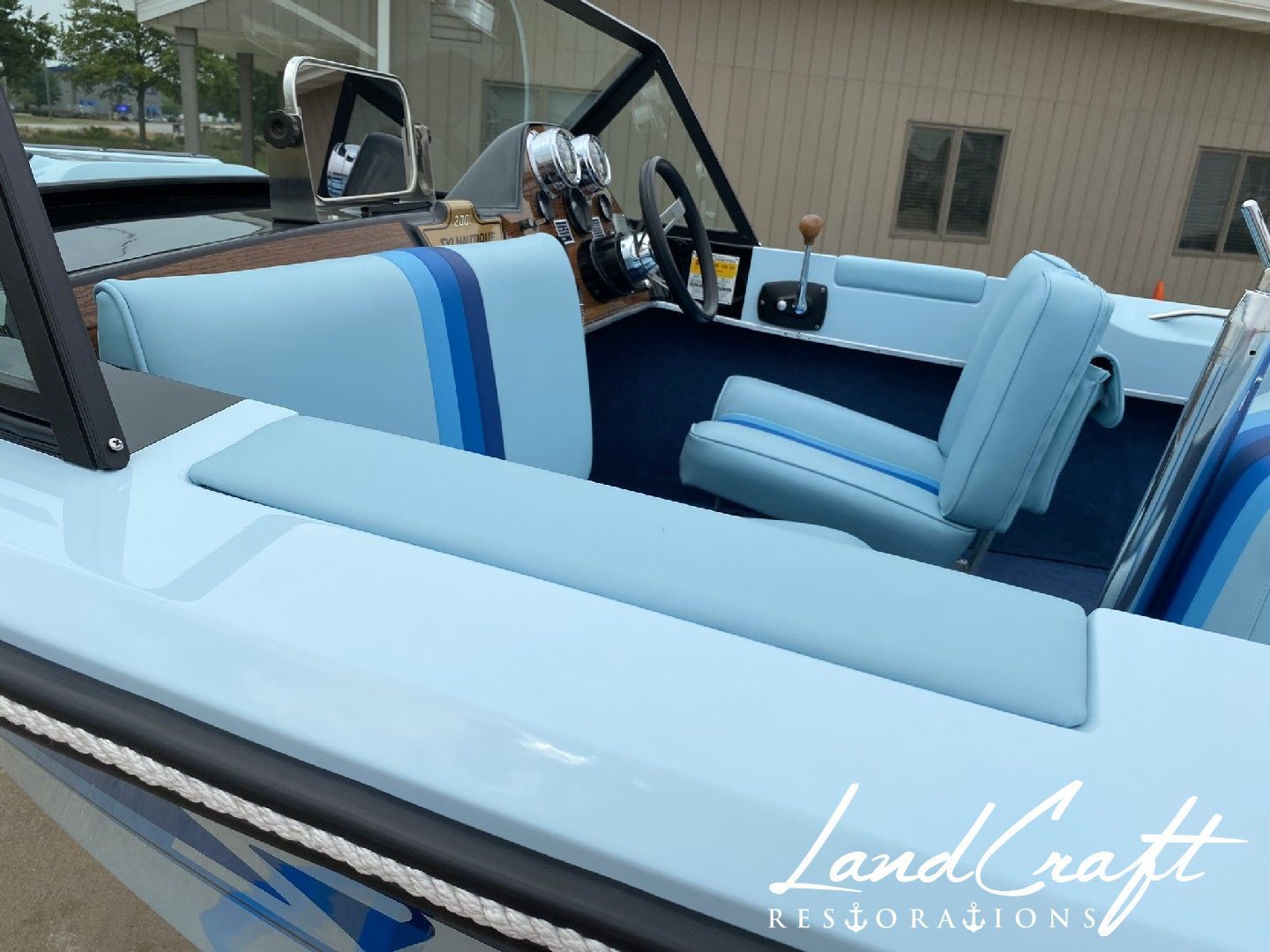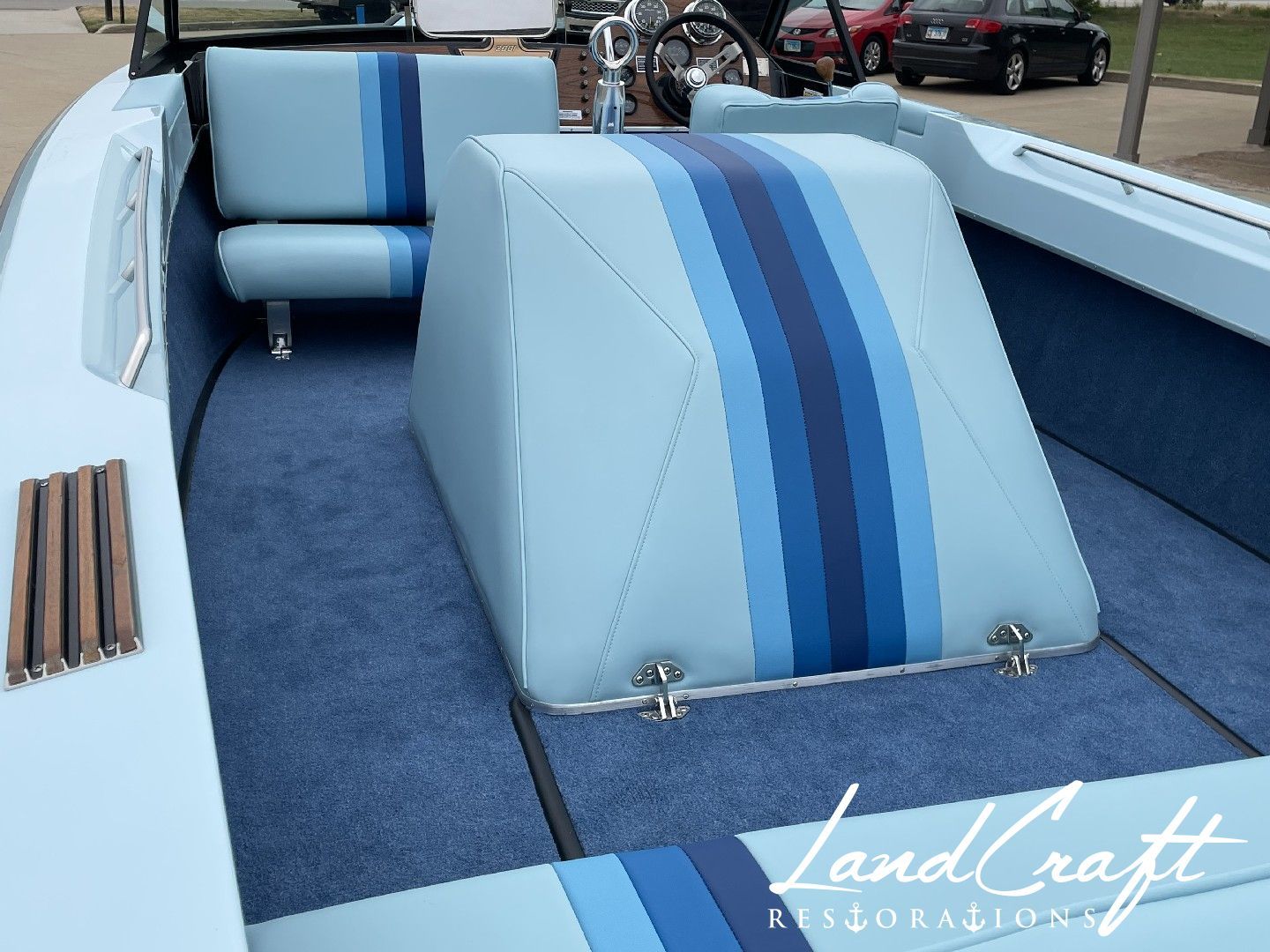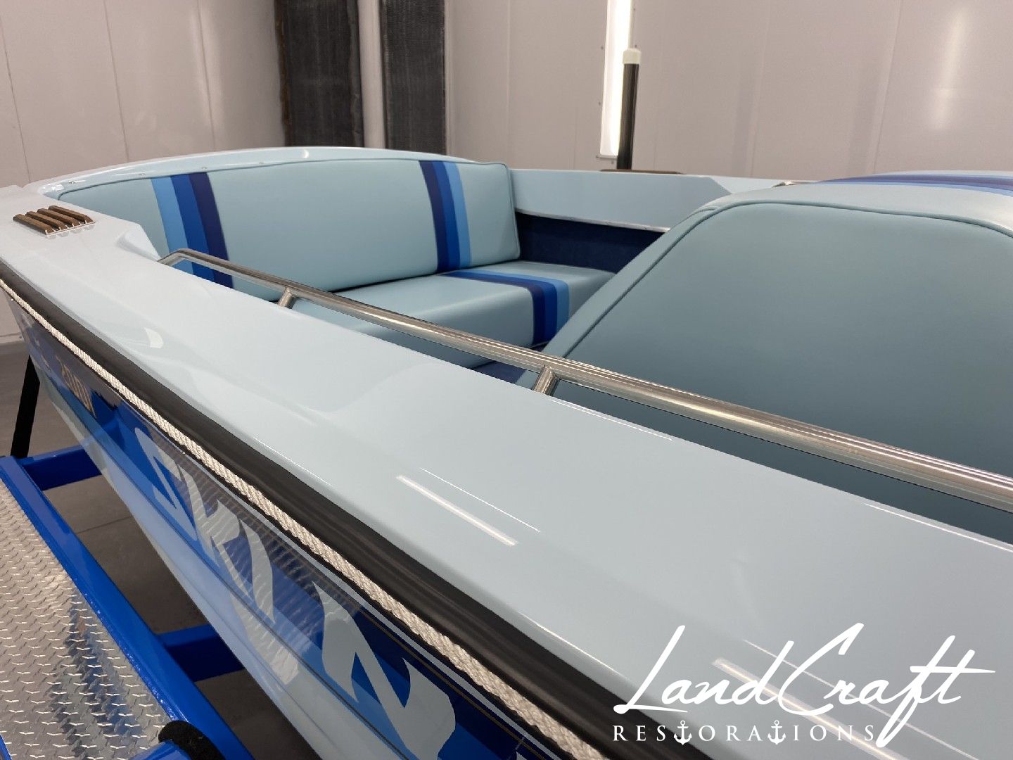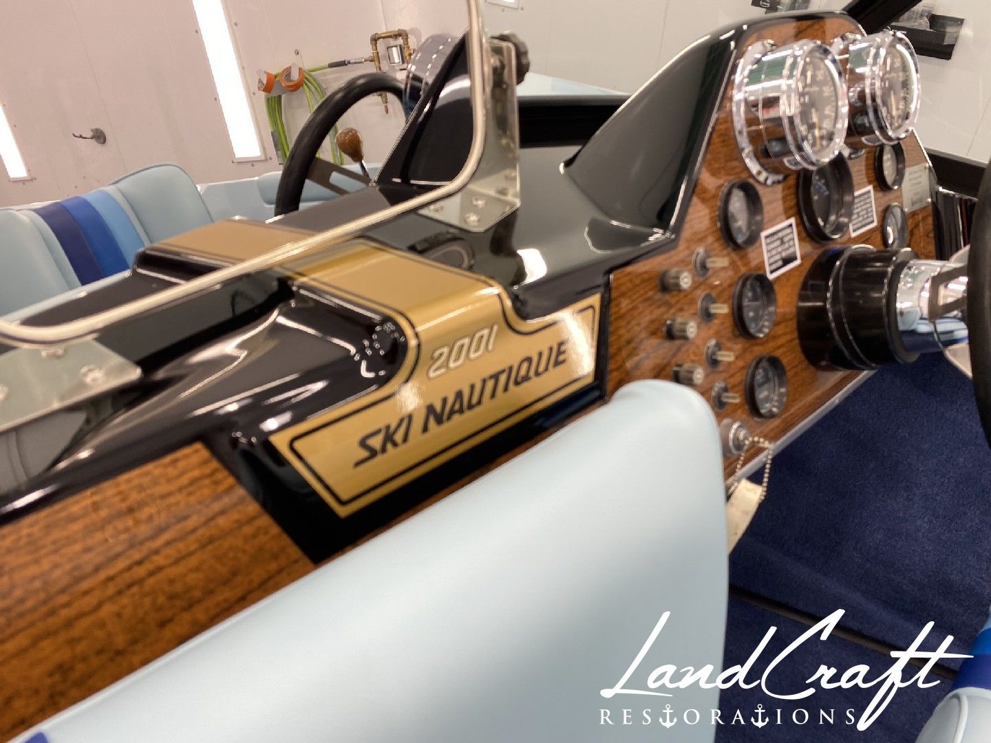 Our client, Marc, brought in his family's classic 1984 Ski Nautique 2001 Competition Ski Boat for a complete factory restoration. He came all the way from Utah! This Ski Nautique carries with it very special memories and LandCraft took great care in every aspect of the refit process. We have restored the exterior with gelcoat that is custom color-matched in-house to original factory colors. The interior upholstery has been returned to the original factory colors and pattern, the original motor has been overhauled and restored, and the boat trailer has been upgraded. There was structural work performed on the interior, and structural and cosmetic repairs completed nearly across the entire boat from the inside out. This 39 year old beauty of a boat has been restored to last another lifetime.