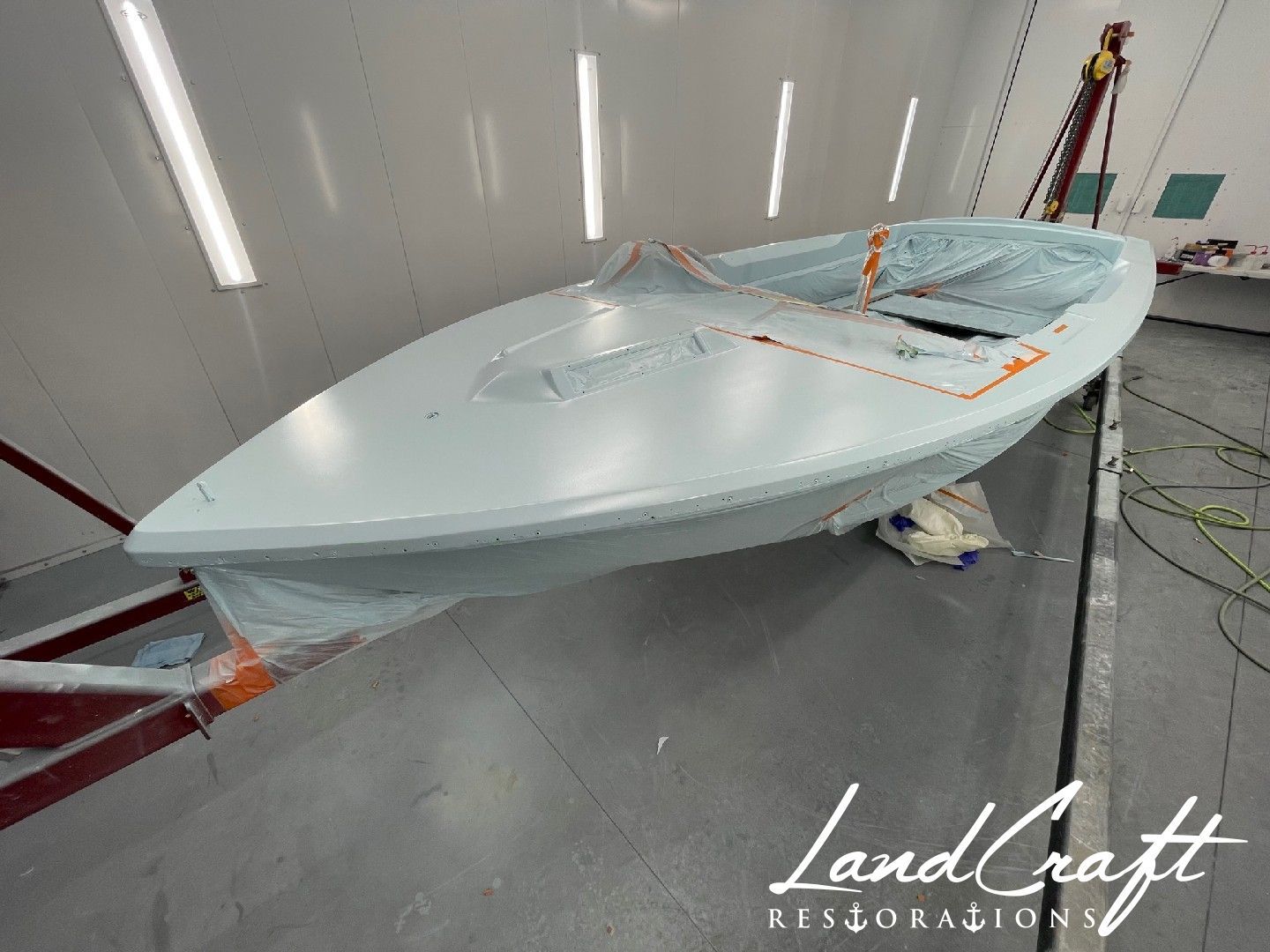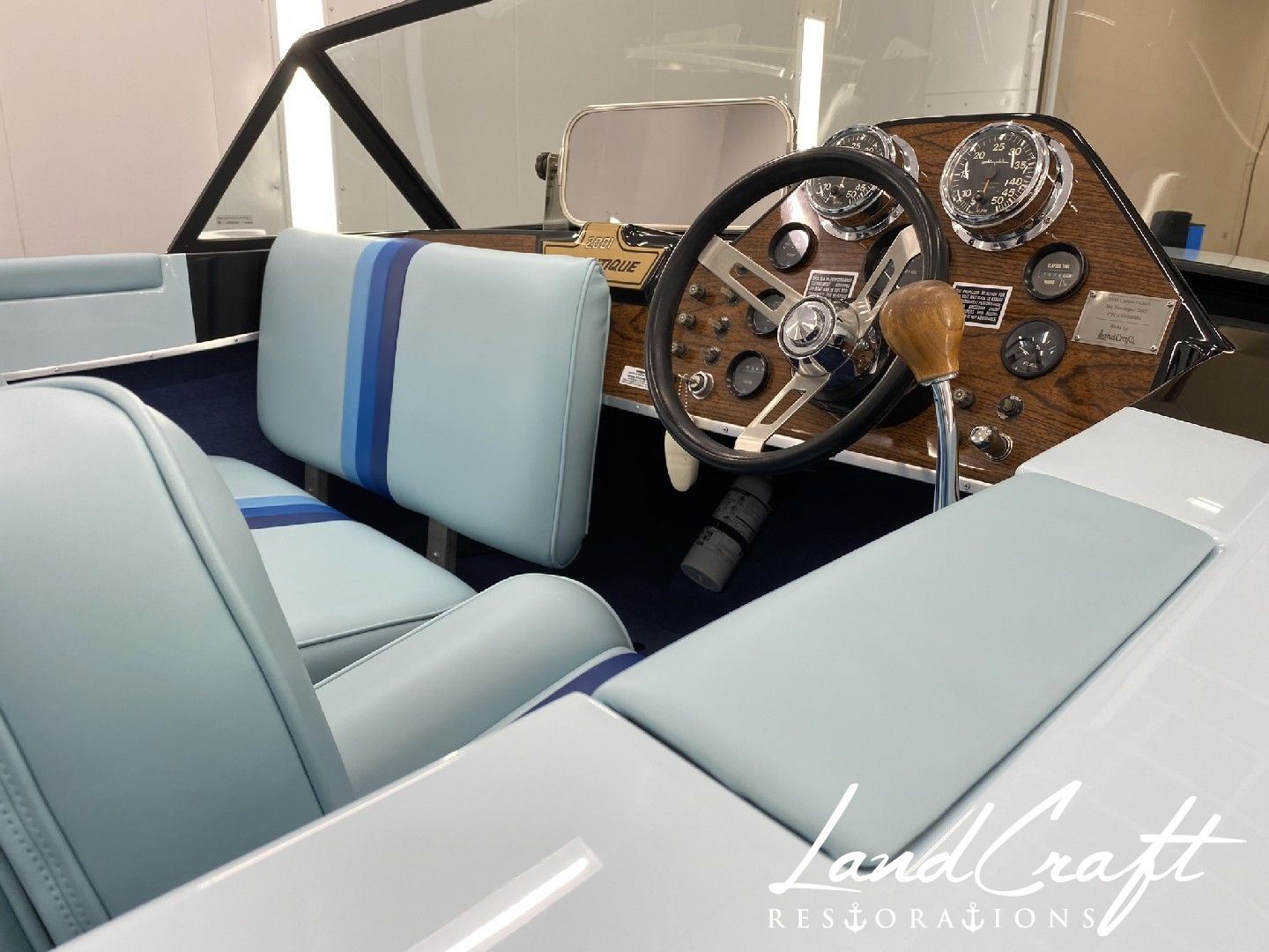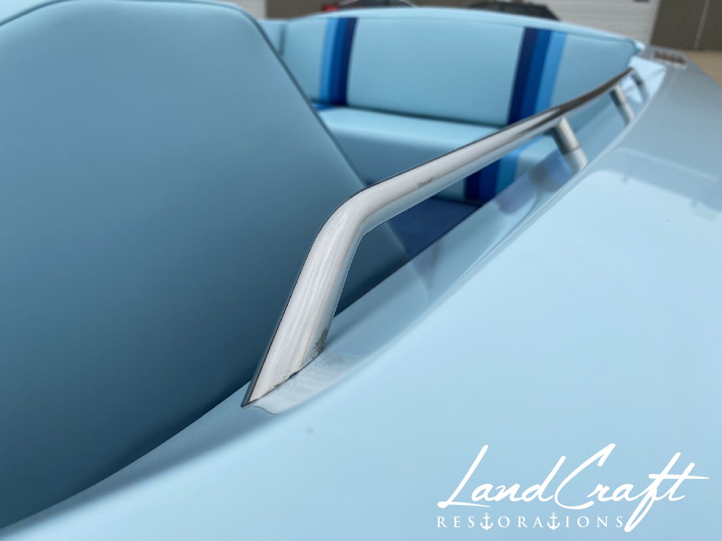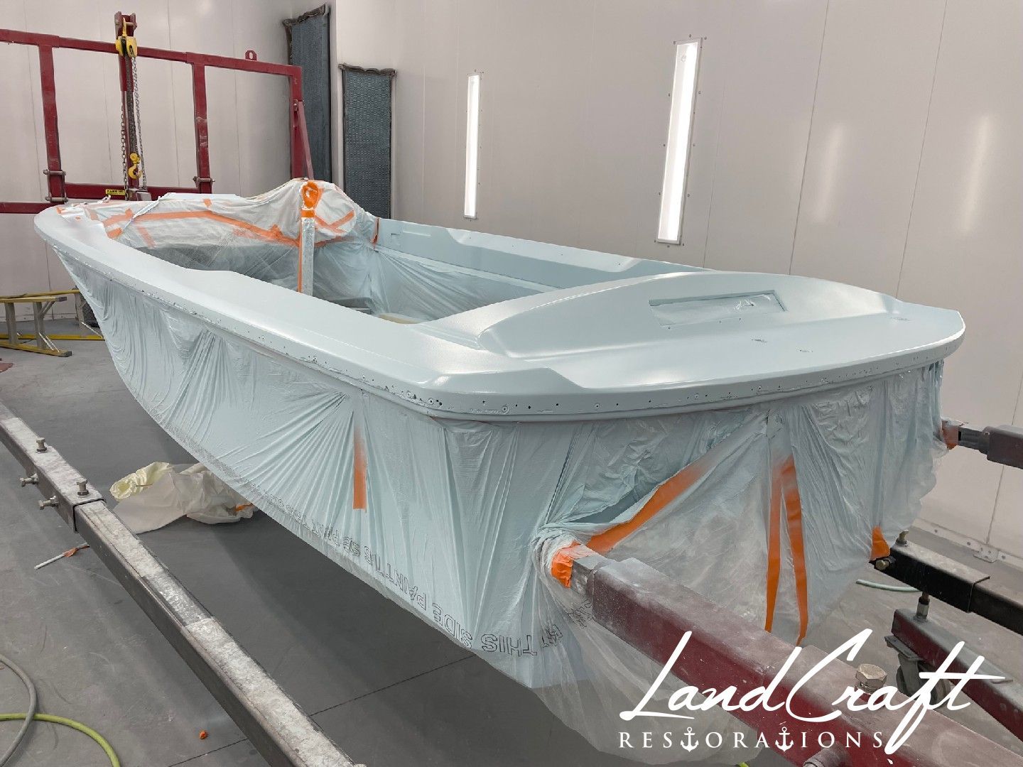 Our client, Marc, brought in his family's classic 1984 Ski Nautique 2001 Competition Ski Boat for a complete factory restoration. He came all the way from Utah! This Ski Nautique carries with it very special memories and LandCraft took great care in every aspect of the refit process. We have restored the exterior with gelcoat that is custom color-matched in-house to original factory colors. The interior upholstery has been returned to the original factory colors and pattern, the original motor has been overhauled and restored, and the boat trailer has been upgraded. There was structural work performed on the interior, and structural and cosmetic repairs completed nearly across the entire boat from the inside out. This 39 year old beauty of a boat has been restored to last another lifetime.